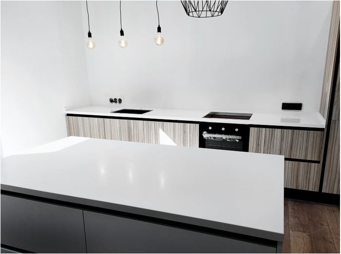 HI-MACS Alpine White is a slightly greyed opaque white. HI-MACS Alpine White is available in a wide range of sheet sizes and thicknesses. 6mm HI-MACS sheets are perfect for wall linings (including wet areas) and low weight bearing decorative cladding applications. 12mm thickness sheets are suitable for most applications, including benchtops. The 20mm thickness sheet provides a durable, cost-effective benchtop without the need for edge buildups.
