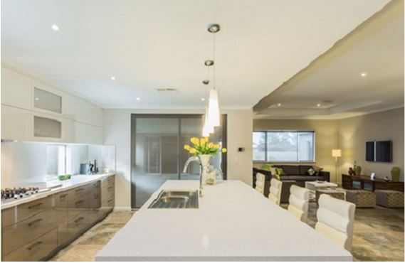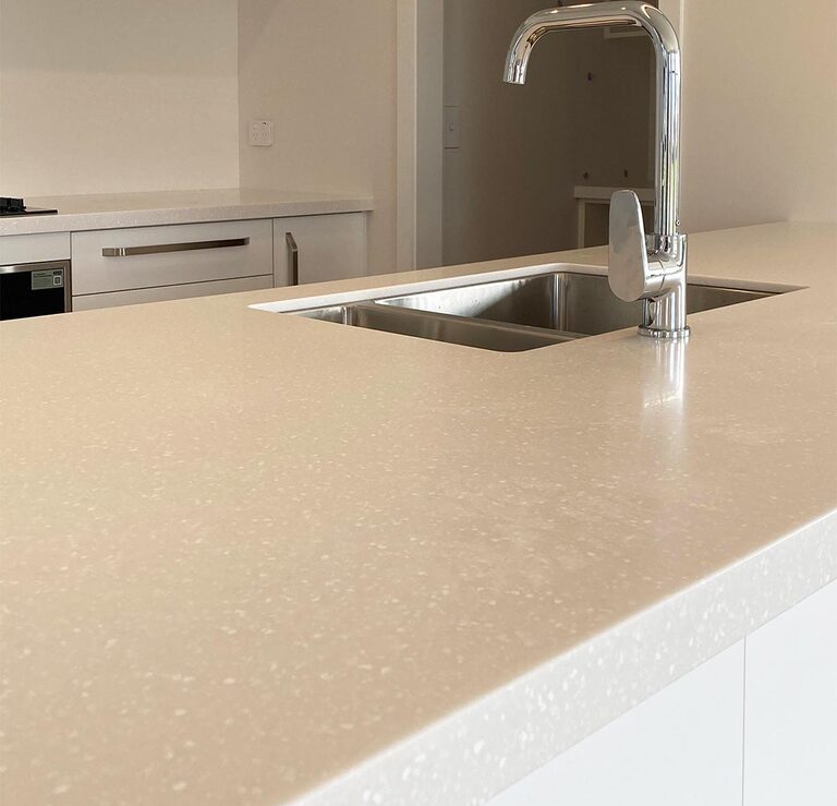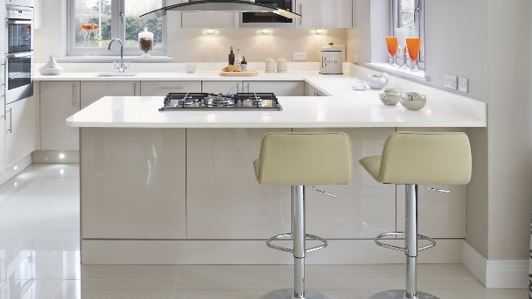 HI-MACS Arctic Granite is a slightly greyed solid white with contrasting white chips of varying size.